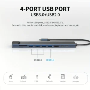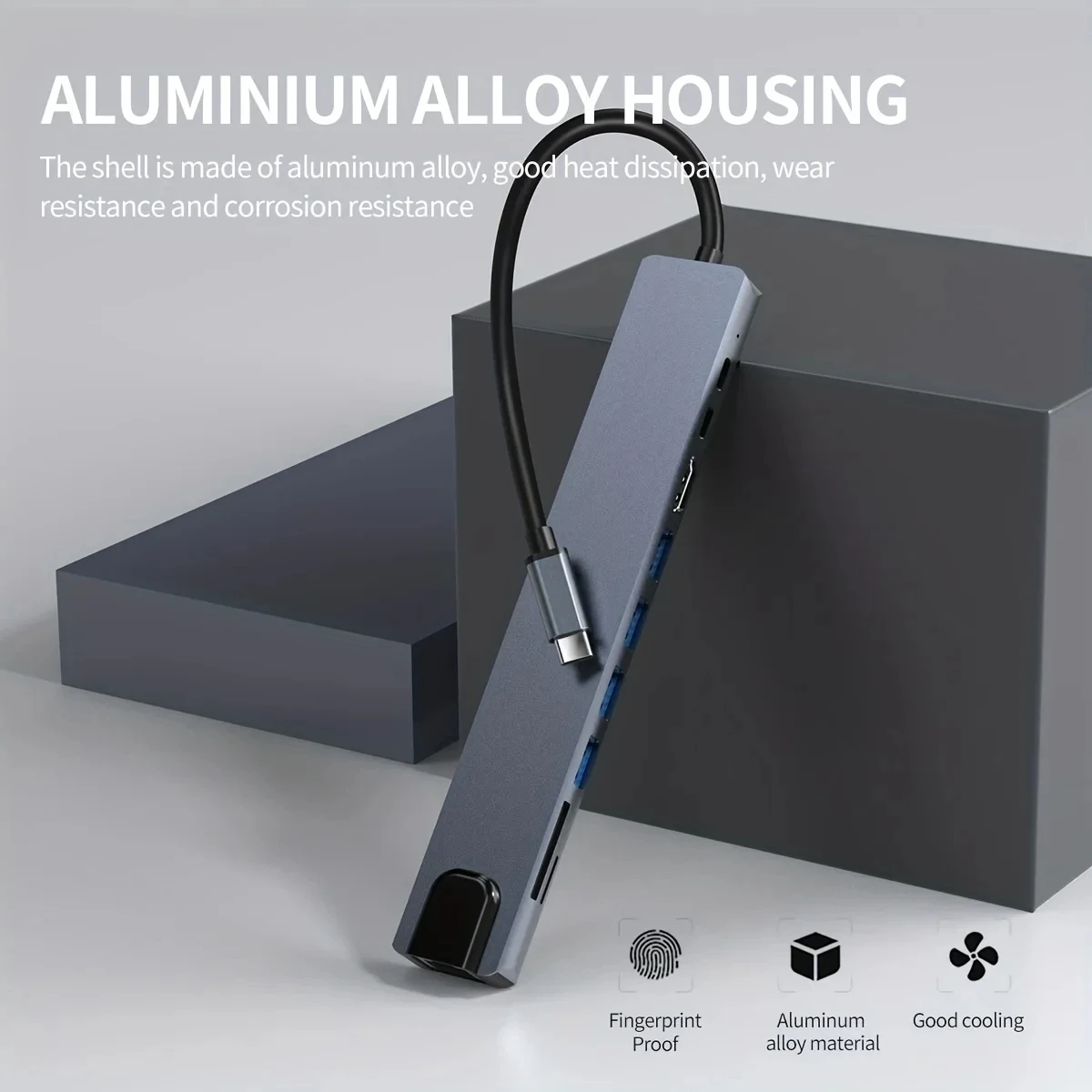 10 in 1 USB C HUB 4K30Hz Docking Station Type C to HDTV-Compatible RJ45 Ethernet PD100W for MacBook iPad Huawei Samsung Phone