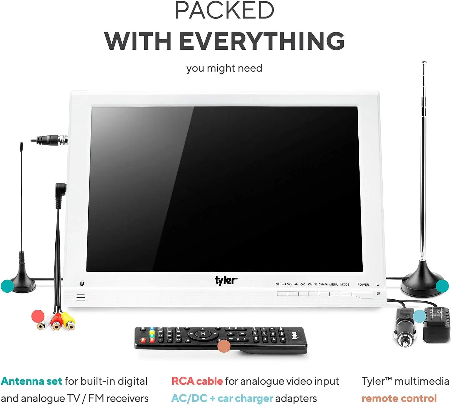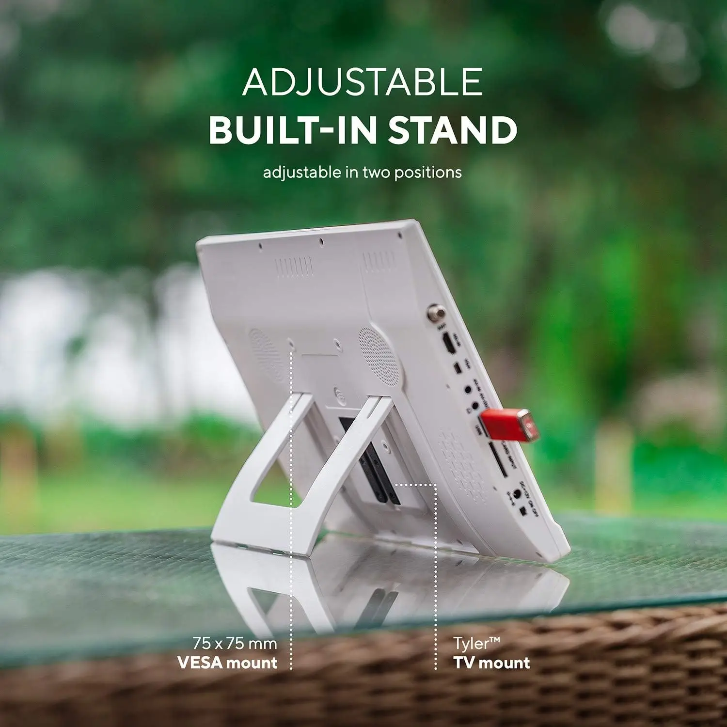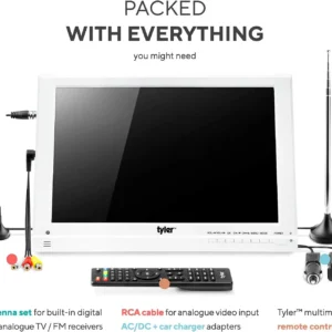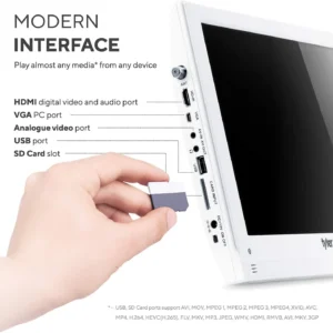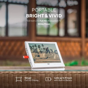 13.3” TV LCD Monitor (Rechargeable Lithium Battery) 1080P Antenna, HDMI, SD, USB, RCA, FM Radio, Digital