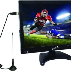 14-Inch LED TV with Digital Tuner, USB/MMC, Lithium Battery, AC/DC Power – Clear Viewing for RVs, Kitchens, Outdoor Use