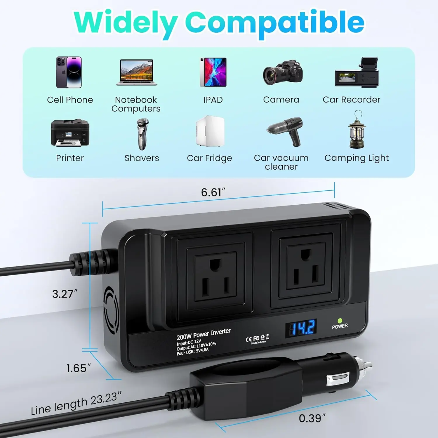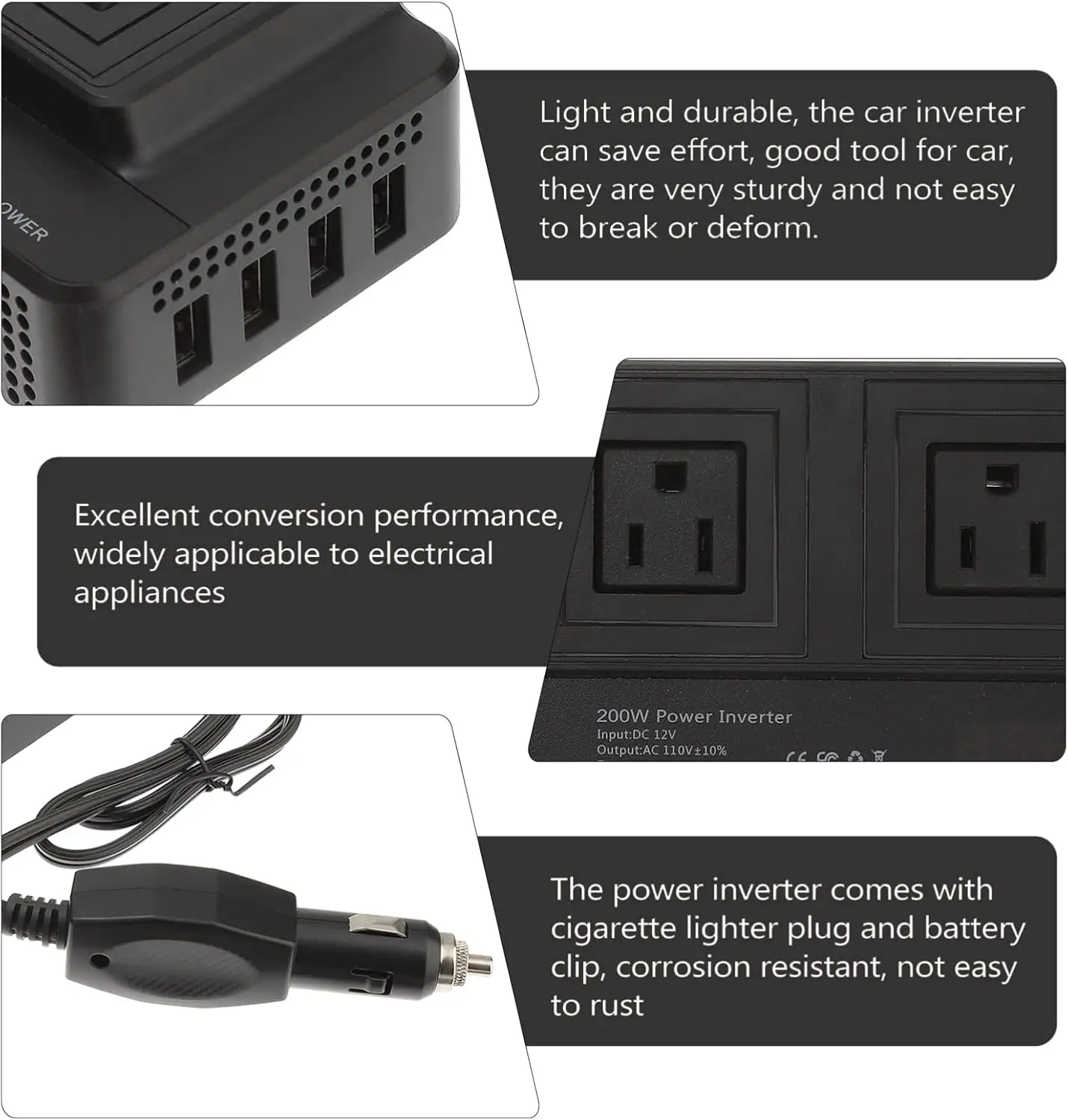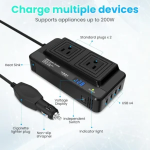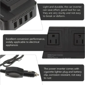 200W Inverter DC To AC 12V to 220V 4 USB 400W Peak Power