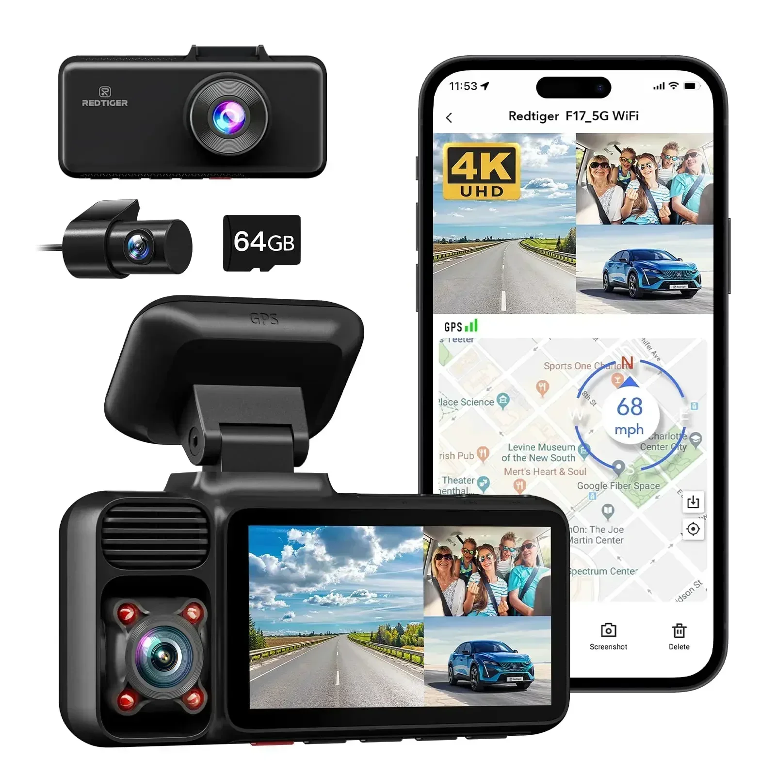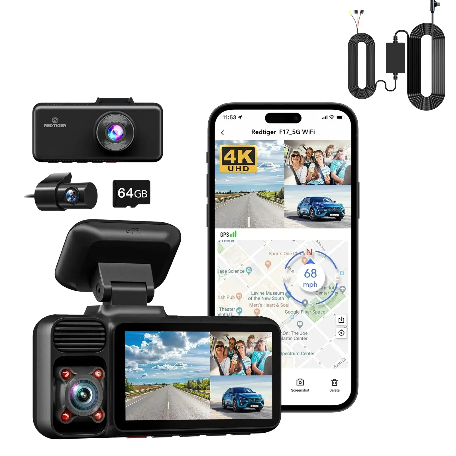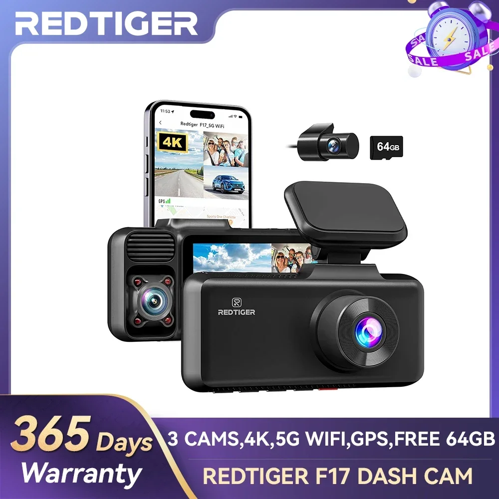 REDTIGER 3 Channel Car Camera 4k Dash Camera for IR Night Vision Car Dvr for 5G WiFi Triple Car Cameras Built-in GPS WDR