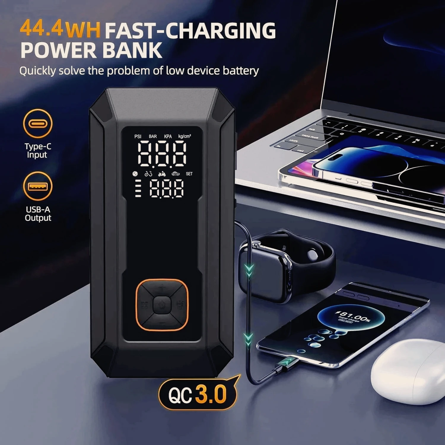 Car Jump Starter with Air Pump 4000A Jump Starter &150PSI Air Compressor, Portable Auto Power Bank ,Tire Inflator, LED Light