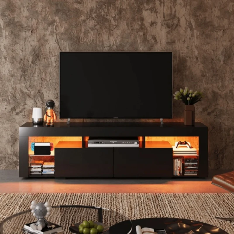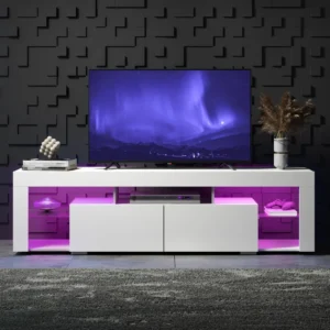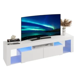 Stand for 60 to 70 Inch TV Entertainment Center with LED Lights, 2 Drawers, Modern TV Console, Large Media Cabinet