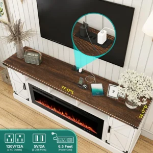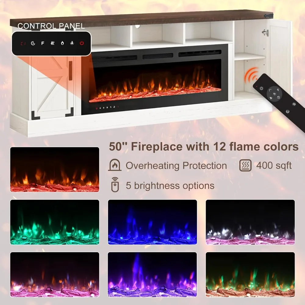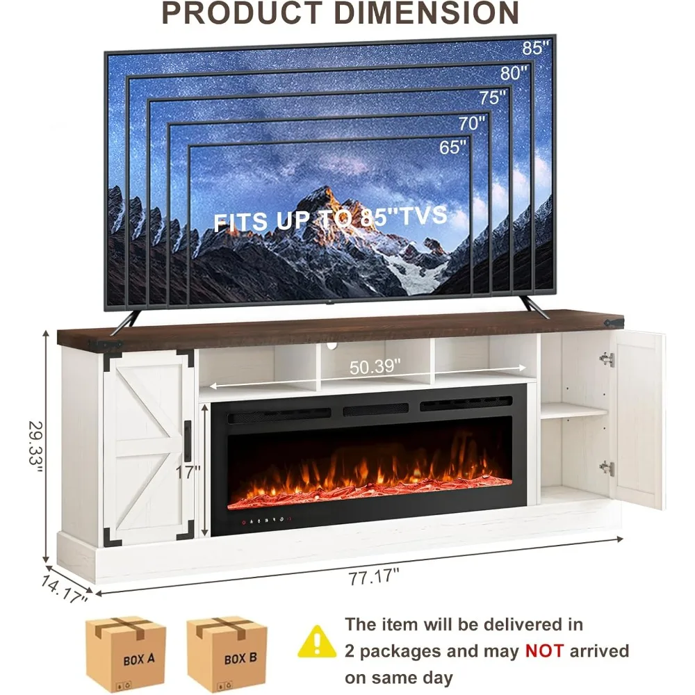 Farmhouse Entertainment Center with 50’’ Electric Fireplace , TV Stand up to 85 Inch