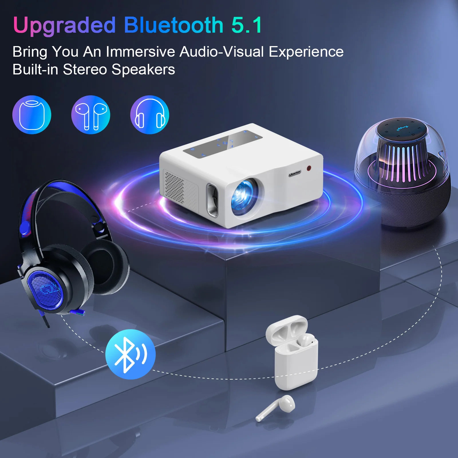 Native 1080P 5G WiFi Projector/18000LM/Outdoor Movie/Projector 4K Suppor IOS/Android/Win/TV Stick/PS5 Whitet/ Max 450″ Display